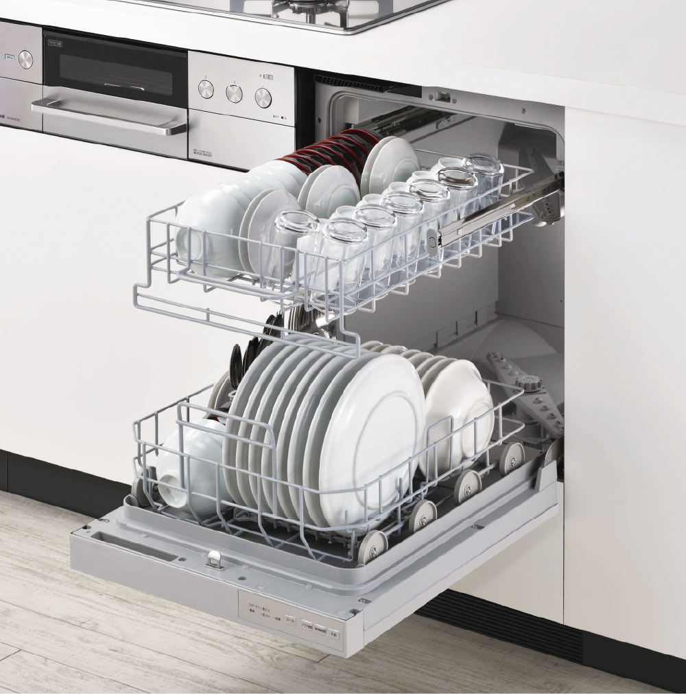 食洗機の給水方法には、給湯器からお湯を取り込む「給湯接続」と、水道水を取り込み食洗機本体で加熱する「給水接続」があります。「給湯接続」なら水道水の加熱時間が短縮でき、食洗機の運転時間を短くできるので、食後の片付けがぐんと楽に!
